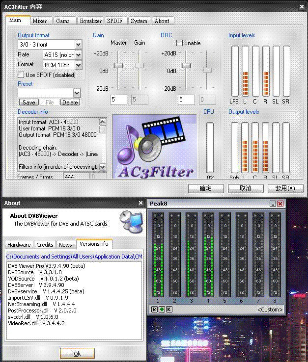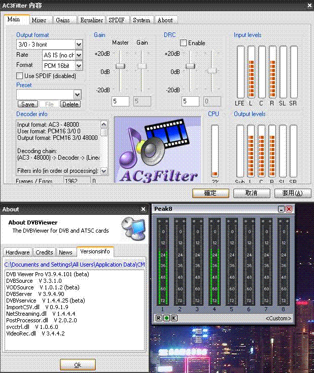 hk_ben Posted December 5, 2008 Author Posted December 5, 2008 I'm using AC3 filter and set the output as 3/0 (3.0)I notice that after version 3.9.4.90, no sound from the center channel. My audio card is Audigy with Kx driver. The problem still persisted with the latest 102RC. The symptom is that AC3filter has not effect on the audio output. This happened after 3.9.4.90 a, Input 2.0 channel and AC3filter set as 5.1 Only 2.0 channel output b, Input 5.1 channel and AC3filter set as 2.0 Still 5.1 output Quote