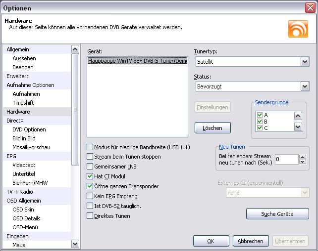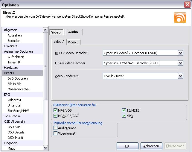 firedevil Posted December 28, 2008 Posted December 28, 2008 Hallo Leute, ich hatte bei der Version 3.9.4.(war es glaube ich) das Problem das ich Ton und EPG Daten erhalten habe, aber kein Bild. Es blieb einfach schwarz. Deshalb habe ich heute die alte Version sauer deinstalliert und die Version 4 installiert. Das Problem besteht aber immer noch. Ich nutze ein Windows XP System mit einer Fernsehkarte von Hauppauge. Model WinTV 88x mit den neusten Treibern. Grafikkarte ist eine NVidia GeForce 7600 GS. Als MPEG2 Video Decoder habe ich CyberLink Video/SP Decoder (PDVD8) ausgewählt. Die Support.zip ist natürlich im Anhang. Ich hoffe ihr habt eine Idee für mich. Vielen Dank für eure Tipps Gruß firedevil support.zip Quote
