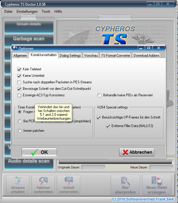 getilus Posted August 29, 2010 Posted August 29, 2010 Hallo, also ich verwende zum demuxen ProjectX (dieses Tool überprüft den Stream auch gleich auf Fehler und korrigiert diese). Zum framegenauen Schneiden verwende ich Cuttermaran. Dieses Tool kann auch wieder muxen. Die beiden o. g. Tools sind: a. Freeware, b. können mit AC3-5.1 umgehen und c. es wird nichts neu encodiert (bis auf die Schnittstellen bei Cuttermaran, sind aber nur ein paar Milisekunden). Der Nachteil: diese Tools können nicht mit HD-Streams umgehen, sind also nur mpeg-fähig und nicht für H264 geeignet. Gruß Quote
