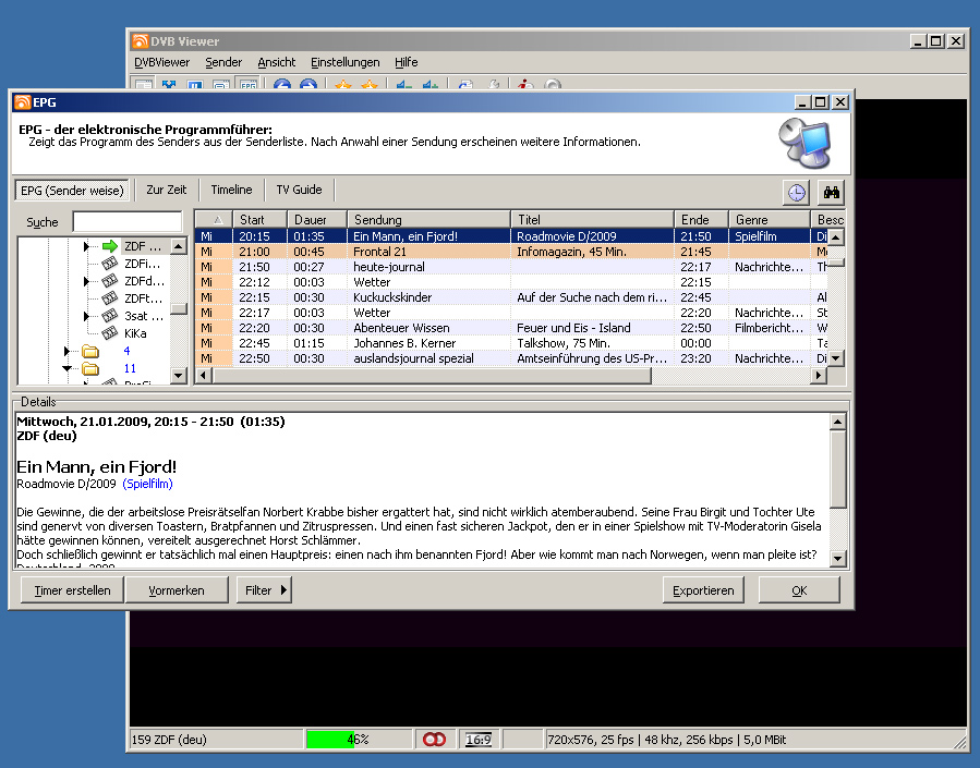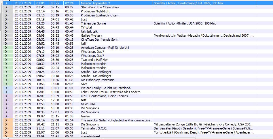 akn09 Posted January 21, 2009 Posted January 21, 2009 Hallo, genau das gleiche Problem habe ich auch mit der 4.0.0.0-Version, welche ich auch völlig neu installiert habe. Mit der Vorversion gab es dieses Problem nicht. Im Anhang ein Beispiel. Im ZDF läuft "Ein Mann, ein Fjord!" und angezeigt wird "Frontal 21". Die Daten überschneiden sich zeitlich... Gruß akn09 Quote