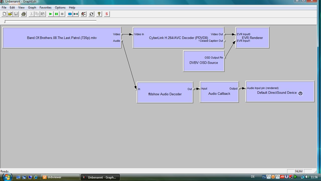 nsc2001 Posted March 1, 2009 Posted March 1, 2009 Hallo liebe DVBViewer Gemeinde, ich habe ein Problem mit dem Abspielen von .mkv Dateien. Wenn ich das Video starten will kommt die ersten paar Sekuden Ton aber kein Bild und danach bleibt auch der Ton stehen. Komischerweise lief erst alles wunderbar. Ich habe die Folgen 1 bis 8 einer Serie geschaut und bei Teil neun fing es an mit dem Problem. Ok dachte ich, wird wohl Folge neun defekt sein. Aber jetzt lassen sich die ersten 8 Folgen auch nicht mehr abspielen. (ich hab zwischendurch nichts geändert, wirklich) Mit dem Mediaplayer Classic und mit dem WMP lassen sich die Videos abspielen (einen Graph hab ich mal beigefügt) Wäre schön wenn mir einer Helfen könnte. Noch zu meinem System: Ich nutze eine Sapphire HD 4350 als Grafikkarte mit dem aktuellen Treiber Catalyst Software Suite (64 bit) English Only 9.2 Mein Mainboard ist ein Gigabyte GA-MA78GM-S2H Rest müsste in der SUPPORT.ZIP stehen. Software: Viste 64 Ultimate DVBViewer 4.0.0.0 Eventghost PowerDVD 8 Ultra ffdshow (H264 deaktiviert, damit PDVD das übernimmt) Danke NSC2001 support.zip Quote