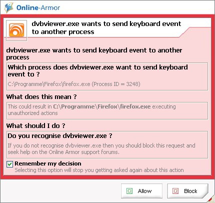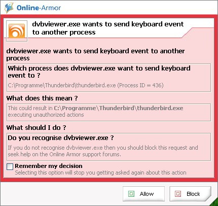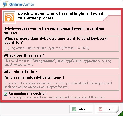 quiz Posted April 2, 2009 Posted April 2, 2009 Hallo, während der Nutzung von DVBViewer bekomme ich von meiner Firewall immer ziemlich beunruhigende Meldungen: Sobald ich ein anderes Programm im Vordergrund habe (und DVBViewer im Hintergrund) kommt dann immer die Meldung "DVBViewer.exe möchte ein Tastatur-Ereignis an einen anderen Prozess (Programm XYZ) senden - dies kann zur Folge haben, dass Programm XYZ unathorisierte Befehle ausführt". Während ich das Ganze bereits bei Webbrowser, Mailprogramm & Co. leicht beunruhigend finde hört für mich der Spaß spätestens auf, wenn ich die Meldung bekomme "DVBViewer möchte ein Tastatur-Ereignis an truecrypt.exe senden - dies kann dazu führen dass TrueCrypt.exe unauthorisierte Befehle ausführt" Diese Meldung erhalte ich für JEDES Programm welches gerade im Vordergrund läuft, selbst an Taskmanager & Co werden Tastatur-Ereignisse gesendet. Was hat das Ganze zu bedeuten und kann man diesen Spuk irgendwie abschalten? Warum will der DVBViewer irgendwelche Tastatur-Events an alle möglichen Programme senden? Welchen Sinn hat das? Quote