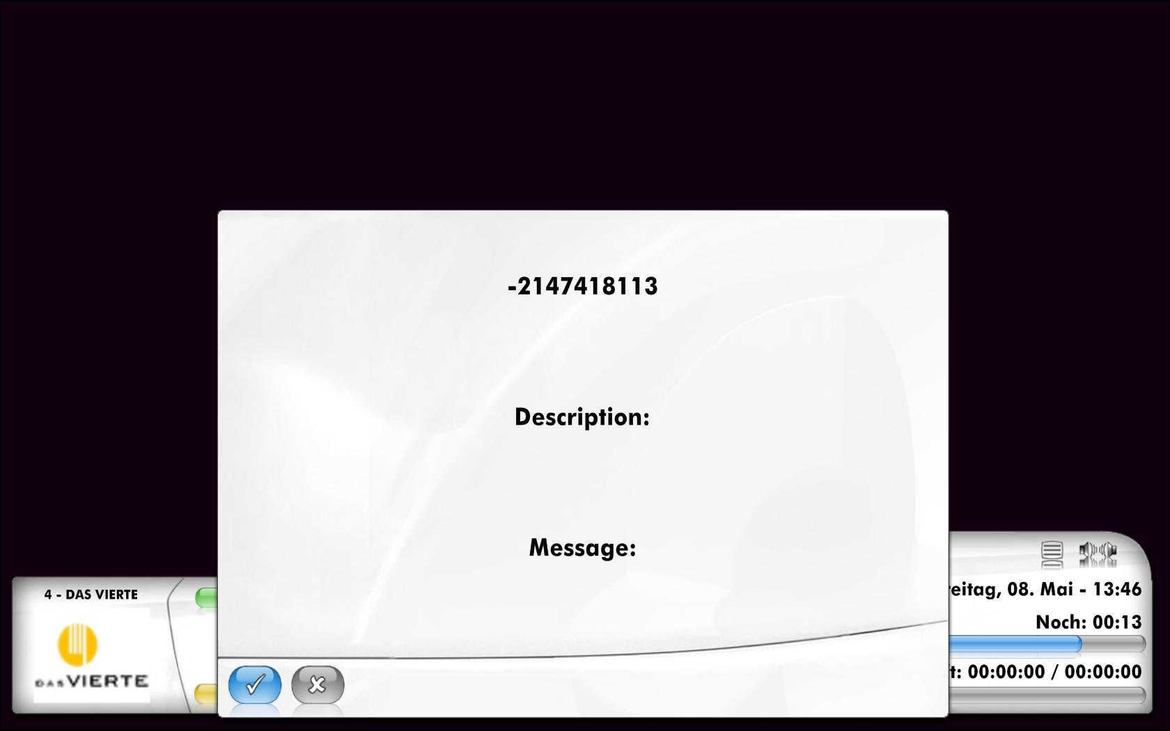 marty-mcbyte Posted May 8, 2009 Author Posted May 8, 2009 (edited) Gibt es vielleicht einen favoriten nicht mehr als sender in der senderliste? Ein check auf favItem = Nothing wäre nicht verkehrt... hmm... tatsächlich, BR-alpha war nicht mehr da, dafür war aber ein Radiosender an der Stelle... nun, Favoriten aufgeräumt, und mit neu getestet: Fehlermeldung, aber das Script wird korrekt abgearbeitet, die Nummern stimmen... so sieht die Meldung heute aus, gestern bekam ich ein Fehlerfenster auf dem Desktop mit der Angabe in welcher Zeile und welcher Spalte der 'Fehler' ist - woraufhin ich die Stelle in den chchg.vbs zu finden glaubte... übrigens, diese gezeigte Meldung innerhalb des Viewers kommt ca. 1 sec nach umschalten und steht dann ca. 2 sec auf dem Bildschirm. Marty edit: der Fehler ist reproduzierbar, gerade auf dem Lap getestet... Mit der installierten Fav-Liste keine Fehlermeldung, mit der 'gewachsenen' Fav-Liste aus der früheren Version kommt der Fehler bzw. die Fehlermeldung. anbei darum die Fav-Liste Edited May 8, 2009 by marty-mcbyte Quote