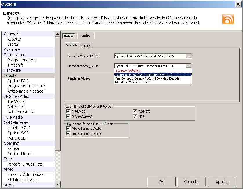 ardua97 Posted July 3, 2009 Author Posted July 3, 2009 as divx codecvideo decoder: Cyberlink Video/SP Decoder(PDVD9 UPnP) Decoder Video H.264:Cyberlink H.264/AVC Decoder (PDVD7.x) Render Video:EVR Vista EnHanced video render DVD Option Decoder Video MPEG2: video decoder: Cyberlink Video/SP Decoder(PDVD9 UPnP) Render Video:EVR Vista EnHanced video render are good this codecs settings Quote