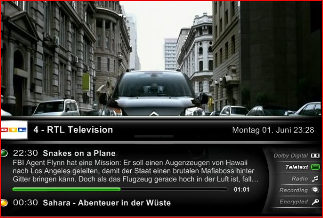 Gelatieri Posted June 1, 2009 Posted June 1, 2009 (edited) Hallo eine frage, als ich den DVBViewer neu installiert hatte und mein ImonPad4 eingerichtet hatte, konnte ich während des laufenden TV Programm auf die Taste OK drücken und Das rechzte Bild wurde angezeigt, auch konnte ich mit den "nach oben" tasten (über und unter der OK taste) und mit der "nach unten" die Kanäle wechseln. jetzt wird nur noch das rechte Bild angezeigt, von dem ich gar nicht weiß, was es zu beseuten hat, und wenn ich die "nach unten" taste drücke, wird das Bild auf Pause gesetzt. Kann mir jemand sagen, warum das so ist? edit: ich meine die OSD Anzeige im unetrem 3tel der bilder. Edited June 1, 2009 by Gelatieri Quote