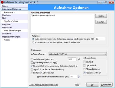 Inti31 Posted September 5, 2011 Posted September 5, 2011 (edited) HAllo! Bevor es hier Missverständnisse gibt - Es gibt einmal die Einstellung im DVBV (Aufnahmen) und die RS-Aufnahme-Optionen. Nur letztere sind interessant, da ja Aufnahmen mittels des Touchscreens an den RS übergeben werden. Es liegen sowieso 2 Aufnahmeverzeichnisse an - bzw. sollten anliegen. Einmal für Aufnahmen, die mittels DVBV erledigt werden und 2 das Aufnahmeverzeichnis für den RS. Wie gesagt, die DVBV-Aufnahme-Einstellungen sind total unwichtig, da ja der RS übernimmt und hier gelten sozusagen nur die RS-Aufnahme-Einstellungen. Bei mir ist das DVBV-Aufnahmeverzeichnis leer. So sollte es aussehen Screenshot 1+2: DVBV-Aufnahme-Optionen / Screenshot 3+4: RS-Aufnahme-Optionen | Wichtig sind nur die recording Service Einstellungen im DVBV. Grüße inti31 PS: fertig mit Screenshot machen und Erläuterungen geschrieben... Edited September 5, 2011 by Inti31 Quote
