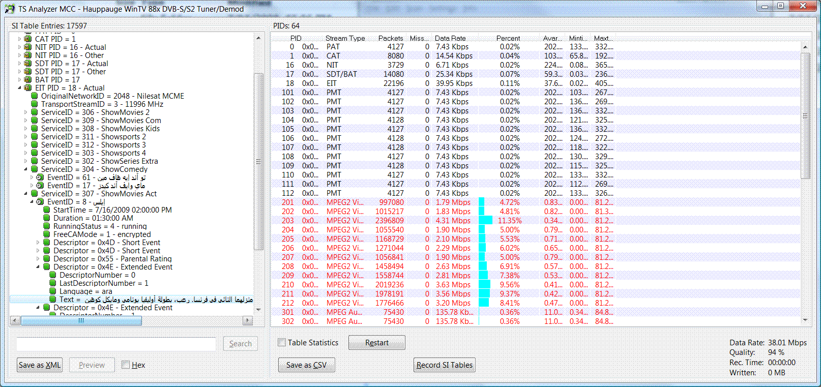 Sultanis Posted July 16, 2009 Author Posted July 16, 2009 I follow the requested steps the EPG is readable how can I make it readable i OSD. Attached analyzer screen shout Nilesat_101_102___Atlantic_Bird_4_11996_H.xml Quote