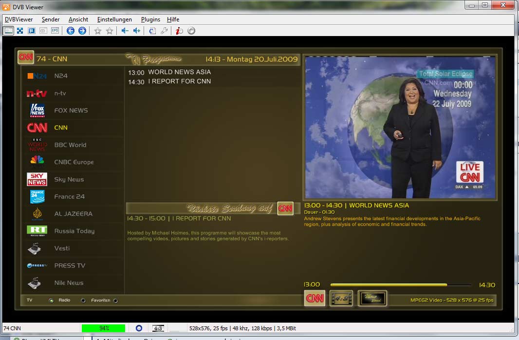 dsimi Posted July 20, 2009 Posted July 20, 2009 So wie ich das in Erinnerung habe Sendet CNN selber kein EPG. Aber ein paar andere Pay-TV Anbieter senden für CNN was als Service für ihre Kunden.Und wenn du jetzt einen anderen Sender einschaltest der EPG für CNN sendet wird das eingesammelt und angezeigt. Kann dann aber durch aus in einer anderen Sprache sein. Hallo Tjod, du musst nicht einmal auf einen anderen CNN umschalten, damit du das EPG auf dem FTA-CNN bekommst. reicht nur, dass du die anderen CNN in der senderliste hast. Ja, das EPG wird dann angesammelt. Das ist mir schon vor einogen Monaten aufgefallen, war mir aber nicht sicher, was da passiert, und wollte nicht unnötig posten. Es wäre viel. aber ein ansatzpunkt, dass man die Sender ohne EPG, durch selbe sender mit EPG bereichern kann. Ähnlich wie MHW EPG, dass man iz.B fur diesen FTA-CNN angibt, dass es sich das EPG von dem CNN auf hotbird z.b holt. Ist aber so ne sache die nicht so ein problem ist, wie der senderwechsel unter EVR mit der 4er version. Quote