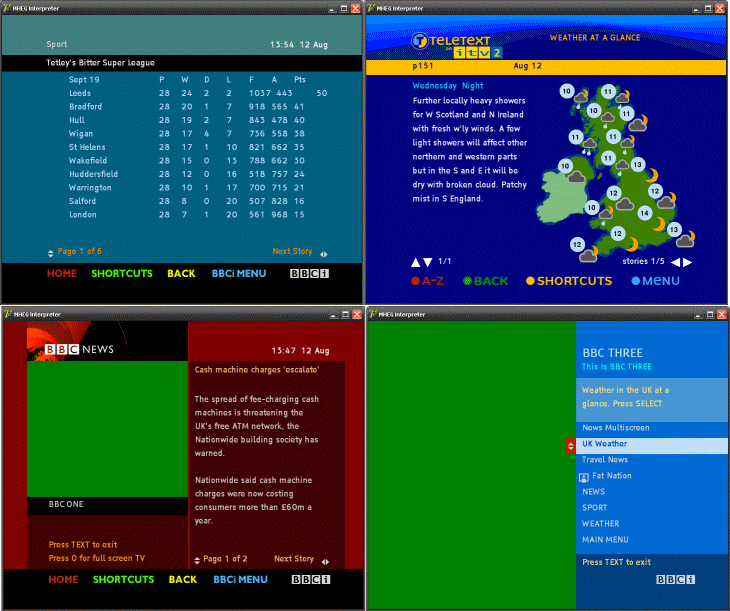 mentalinc Posted August 17, 2009 Posted August 17, 2009 (edited) Thanks with the help of those files we where able to test our Mheg engine. As you can see it seems to work like it should If there is a hong kong user able to provide us with the same information we could also test the mheg compatibility there... Christian Looks great, any plans to release a beta? Edited August 17, 2009 by mentalinc Quote