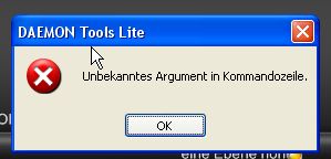 pesuma Posted November 9, 2009 Posted November 9, 2009 (edited) Hi, also habe es eben mit der aktuellen Daemon Tools Lite Version 4.35.5 probiert. Die Programmdatei heißt hier "DTLite.exe". Die wird allerdings auch nicht angezeigt beim Durchsuchen, so dass ich den Pfad per Hand angeben musste. Und dann meldet Daemon Tools beim aktivieren der iso-Datei : "Unbekanntes Argument in der Komandozeile." Siehe Anhang. Ich werde nun mal dieses VCD versuchen. Gruß Edited November 9, 2009 by pesuma Quote