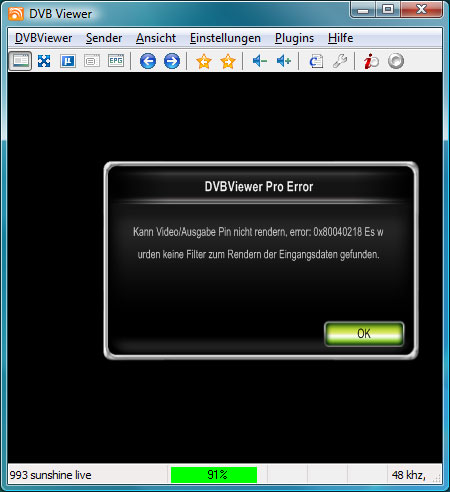 andreas1983 Posted September 24, 2009 Posted September 24, 2009 Hallo zusammen, leider musste ich nach einem Festplattencrash mein System neuinstallieren. Heute habe ich endlich den DVBViewer wieder installiert weil ich mal ne Runde TV schauen wollte. Allerdings tritt nun folgender Fehler auf, wenn ich ein TV Programm auswähle. Ton kommt ohne Probleme. Das support.zip File habe ich direkt mal angehängt. Ich hoffe ihr könnt mir helfen. Grüße Andreas support.zip Quote
