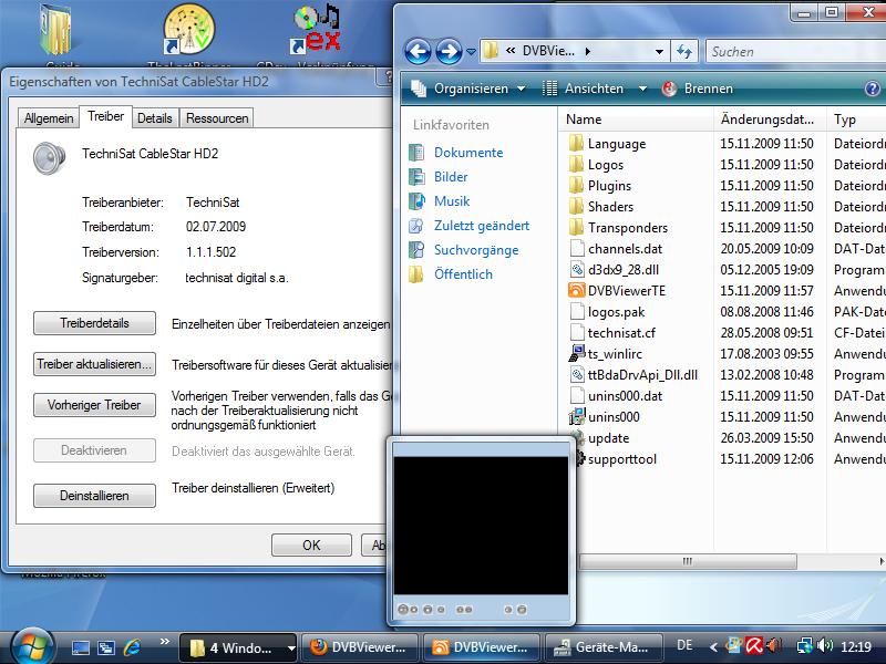 gkmw Posted November 13, 2009 Posted November 13, 2009 Ich habe einen neuen Medion S4506 mit Vista 32 und Media Center. Eingebaute Karte war nut Analog (findet die Sender) also CableStar mit eingebaut. Mit der Installation von der CD 4.4.1.435 erscheint die Karte in der Hardware (ebenso im Gerätemanager) und auf Prefered gesetz ander auf do not use. Aber kein Kanal zu sehen bei Klich auf Auf/Ab kommt die Meldung "kein Gültiges DVB Gerät gefunden". Wie startet man denn die Sendersuche oder installiert entsprechende Treiber? Die Datei Hardware.ini habe ich nicht gefunden (auch nicht in den versteckten) um sie den Tips nach zu löschen. Bei der ClearDeviced Datei von technisat blitz nur kurz ein Dos Fenster auf. aber Ohne Wirkung. Also DVB deinstalliert und neue von Technisat Downloadseite installiert. Jetzt erscheint DVB nur in der Bodenzeile als Wäre es offen aber kein Fenster zu sehen. Dann kommt die Meldung "Systemfehler code 5 Zugrifff verweigert" Kann jemand helfen ? Die supporttool.zip des Forums habe ich auch im DVB Verzeichnis ausgeführt nur gibt es dort keinen Zip Ordner den ich ranhängen könnte "Datei wurde nicht gefunden". Ich würde mit ja auch den DVBViewer kaufen aber wenn ich nicht weiß ob überhaupt eine Chance besteht was zum laufen zu bekommen.. Quote