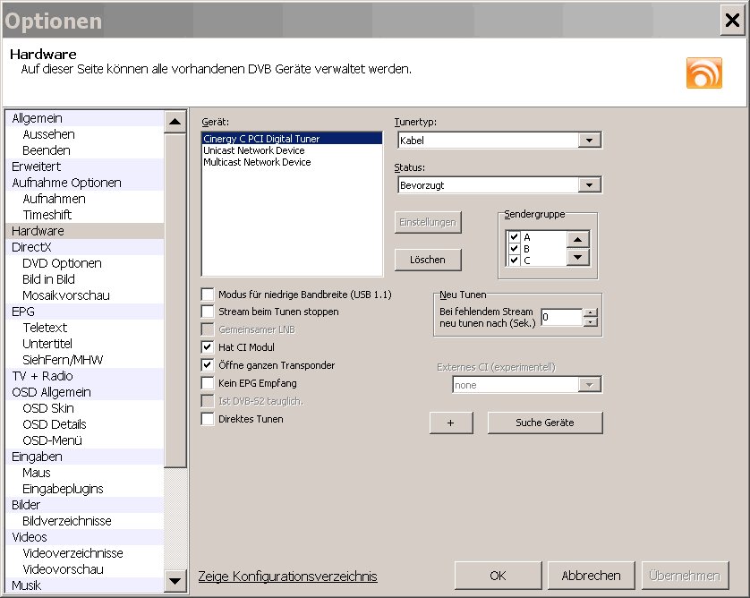 wulfmanjack Posted December 20, 2009 Author Posted December 20, 2009 (edited) So, ich hab den neuesten Treiber von Terratec installiert, im Gerätemanager wird sie richtig erkannt, im DVBViewer allerdings nicht. Die PCI-Karte Cinergy C wird im DVBViewer erkannt, die H7 nicht. Siehe Hardcopies im Anhang Edited December 20, 2009 by wulfmanjack Quote