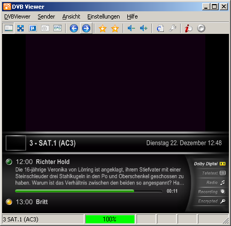 HVR4000er Posted December 22, 2009 Posted December 22, 2009 Hallo zusammen, ich bin erstmal heilfroh, daß jemand das gleiche Problem hat wie ich. Ich habe auf dem HTPC die aktuelle Recording Service Beta 1.5.0.31 und 2 Clients DVBV Pro 4.2.1, einmal lokal und einmal übers Netz. Es kommen folgende Fehler vor: 1.) ich fahre die Rechner aus dem Ruhezustand und beim Starten des lokalen DVBV erscheint ein schwarzes Bild ohne Fehlermeldung. Das Webinterface ist entweder gar nicht erreichbar oder friert ein beim Navigieren durch das Web-menü. Manchmal bleibt das Web-Interface auch funktionsfähig. 2.) ich starte den DVBV auf dem Client im Netz und der Kanal wird getunt, läuft 3s und dann friert das TV-Bild ein. Ton stoppt auch. Wenn man andere Kanäle wählt, bleibt das Bild schwarz und der Ton bleibt stumm. Das OSD mit der 3s-Einblendung ist da. Das Webinterface ist entweder gar nicht erreichbar oder friert ein beim Navigieren durch das Web-menü. Manchmal bleibt das Web-Interface auch funktionsfähig. 3.) ich starte den DVBV auf dem Client im Netz und der Kanal wird getunt und das Bild bleibt schwarz. Kein Ton. Das OSD mit der 3s-Einblendung ist da. Das Webinterface ist entweder gar nicht erreichbar oder friert ein beim Navigieren durch das Web-menü. Manchmal bleibt das Web-Interface auch funktionsfähig. Wie ich den Fehler manuell zuverlässig beseitige: DVBV schließen und RecordingService über das Trayicon stoppen. Transedit starten und einen Transponder auf Astra19,2 analysieren. Es müssen alle Sender darauf erscheinen. Transedit schließen, RecService starten und DVBV starten -> Empfang ist da. Der RecordingService ist eine prima Technologie, aber den den gravierenden Zuverlässigkeitsproblemen ist es im Moment für mich noch unbrauchbar. Würde mich freuen, wenn wir dem Fehler hier auf die Schliche kommen könnten. Mir ist z.B. nicht klar, welche Prios ich den Clients zuordne und welche Prios ich den 2 TV-Karten zuordne. Im Anhang der schwarze stumme DVBV danke & Gruß