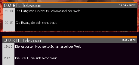 Guest Oliver Posted April 12, 2004 Posted April 12, 2004 Poste doch mal einen Screenshot, bei VMR geht das ja problemlos. Bis dann, Oliver PS: Es gibt noch ein paar inoffizielle Settings für die Setup.ini (die betreffen aber nur die Position). Einfach folgenden Absatz einfügen und die Werte nach Wunsch anpassen: [OSD] AspectX= AspectY= TeletextPosX=20 TeletextPosY=20 ChannelPosX= 10 ChannelPosY= 8 RecTipX= 10 RecTipY= 10 GaugePosX= 10 GaugePosY= 8 Quote