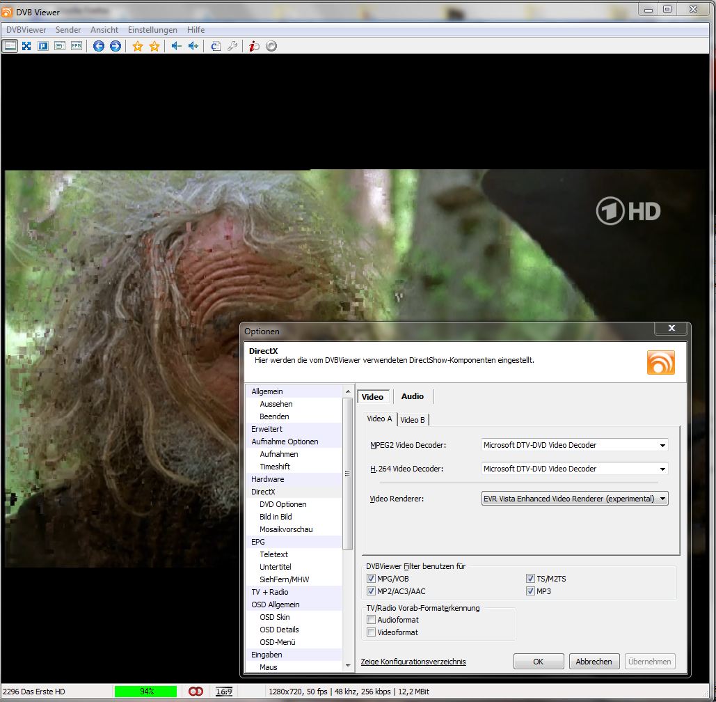 dvbv Posted December 28, 2009 Posted December 28, 2009 Hi, ein ähnliches Problem hatte ich auch, aber nur in der Kombination ATI-Karte mit MS DTV-Dekoder und 720p-Sender (also die ÖR, ARD , ZDF, ARTE HD). Das Problem tritt bei mir nicht auf bei 1080i (Anixe, Astra HD, Sky HD) und auch nicht bei Verwendung des PowerDVD 7.3 Dekoders. MS und ATI arbeiten wohl an den Problem: http://support.microsoft.com/?kbid=2008334 Lösung bei mir also Verwendung des PowerDVD 7.3 für H.264 - aber Du hast ja schon geschrieben, dass PDVD8 bei Dir nichts ändert; ist also vielleicht ein anderes Problem - probier aber trotzdem mal DXVA bei PDVD auszuschalten. Quote
