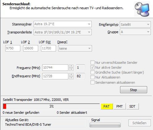 concu Posted January 16, 2010 Posted January 16, 2010 Hallo, ich habe das Problem, dass meine TV-Karte "Technotrend S2-3200" keinen einzigen Sender findet. Die Karte unterstützt DVB-S und DVB-S2. Nachdem ich die neuesten Treiber für die TV-Karte installiert habe (5.0.1.8) habe ich DVBViewer Pro installiert (wird im Geräte-Manager als "TT-Budget S2-3200 BDA" angezeigt). Senderliste für Astra 19.2° habe ich mitinstalliert. Habe dann den Wizard benutzt und dort wird die Karte schonmal angezeigt als Technotrend BDA/DVB-S Tuner. Tunertyp ist auf "Satellit". Status habe ich "Normal" und "Bevorzugt" ausprobiert. Beim Sendersuchlauf im Wizard habe ich auch den "Astra 1F/1H/1KR/1L/1M 19.2° E" ausgewählt. "DVB System" steht auf Satellit. Auch beim Suchlauf im DVBViewer selber findet er gar nichts (siehe Screenshot). Die meiste Zeit wird gar kein Signal angezeigt. Nur manchmal im Suchlauf zeigt er dort kurz etwas an, findet aber dann auch keinen Sender. Zur Sat-Anlage hier: Schüssel 88 cm Quattro-LNB Multiswitch 5/4 kaskadierbar Allerdings funktioniert im Haus ein Digitalreceiver. Dort funktionieren z.B. folgende Sender (habe nur mal paar rausgesucht): Das Erste 11837 / 27500 / H Kabel eins 12545 / 22000 / H Nick Germany 11973 / 27500 / V Deluxe Music 12246 / 27500 / V Das sagt mir doch, dass horizontal, vertikal und Highband sowie Lowband funktionieren oder? Kann man dann davon ausgehen, dass wirklich digital funktioniert? Wieso findet jetzt meine TV-Karte gar nichts? Bin da ziemlich ratlos. Danke Quote