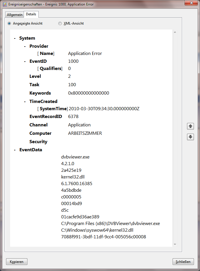 ennimann Posted March 30, 2010 Author Posted March 30, 2010 (edited) So, habe jetzt mal ins Ereignisprotokoll gesehen. Vieleicht kann man da was rauslesen??? Edited March 30, 2010 by ennimann Quote
