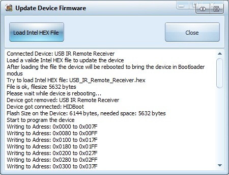 Portisch Posted April 30, 2010 Author Posted April 30, 2010 Update 1.0.0.5 28.04.2010: DLL: v1.0.0.5, Added possibility to flash or update the device firmware direct with the USB IR Remote Receiver settings/option dialog. AVR: Bugfix code repeats Updated Irmp to 28.04.2010 Added modified booloadHID to be able to flash the device without setting a jumper or needed disconnect/reconnect of the device The booloadHID will boot if: + no USB IR Remote Receiver firmware is flashed + jumper is set + the firmware itself is reseting the device for bootloader modus Mit dem modifizierten Bootloader kann nun einfach einen neue Firmware runter gespielt werden ohne den Jumper setzen oder das Device aus/ein stecken zu müssen. Zusätzlich hätte ich noch die Frage, ob ich vielleicht etwas mehr Upload-Speicher haben könnte Nach Säubern der Uploads sind trotzdem nur mehr 82.09KB verfügbar... Danke! Quote
