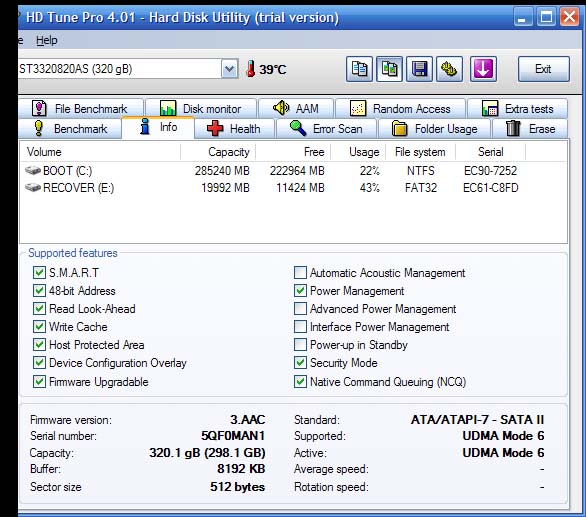 Datho Posted March 25, 2010 Author Posted March 25, 2010 (edited) Hallo, wie ist denn diese externe HDD im "Datenhafen" physikalisch mit dem PC verbunden? Über USB? Oder eSATA? Oder gar irgendwas proprietäres, vielleicht drahtlos? Weche Übertragungsraten macht die Platte mindestens? Teste es z. B. mit HDTune, wenn du das nicht weißt. Einen schönen guten Tag aus der Eifel, habe mir das Tool HD Tune Pro 4.01 (trial Version) installiert. Unter dem Register info ist die externe Festplatte nicht aufgeführt. Unter Arbeitsplatz und in der System Steuerung ist diese erkennbar. Mein Englisch ist gleich null, und bitte um Schritt für Schritt Anleitung um weiterzukommen. Vorerst danke Datho Edited March 25, 2010 by Datho Quote
