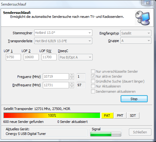 Kinzal Posted April 15, 2010 Posted April 15, 2010 (edited) Hallo, ich habe heute einen Sendersuchlauf gemacht auf Hotbird 13.0° jedoch findet der bei der suche nur 600 sender also bei weitem nicht alles, ich vermisse einige sender. Meine einstellungen beim Sendersuchlauf, siehe Bild. Ich benutzte die letzte Version von DVBViewer Pro. Was mir auch aufgefallen ist ist das der bei der suche sender findet die es garnicht auf 13.0° gibt wie z.B. Sky oder ProSieben oder arena, die senden auch nicht auf Hotbird (mehr dazu siehe Bild.) Bei Astra 19.2° ist alle in ordnung, da gibt es keine probleme. Edited April 15, 2010 by BadLucky Quote