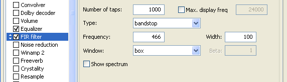 Griga Posted June 15, 2010 Posted June 15, 2010 So muss man ungefähr den ffdshow FIR-Filter konfigurieren, damit er den Hauptstörenfried 466 Hz rausnimmt. Den Equalizer setze ich zusätzlich, aber etwas moderater ein, und bei 466 Hz gar nicht mehr. Das Ergebnis ist recht gut. Allerdings weiß ich nicht genau, was die FIR-Einstellmöglichkeiten bedeuten - habe mehr oder weniger blind probiert. Vielleicht kommt noch jemand zu weiteren Erkenntnissen... Quote