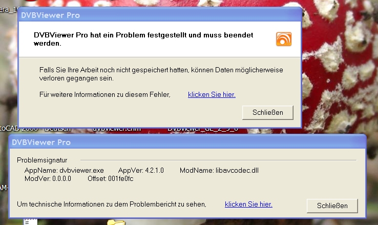 ralf1402 Posted June 13, 2010 Posted June 13, 2010 Hallo, habe mir den DVBViewer Pro zugelegt, da die Software von Terratec bei HD Sendern zu große Systemressourcen auf meinen Rechner in Anspruch nimmt. Der DVBViewer ist da bescheidener, allerdings stürzt er of ab. Kann die jeweilige Situation auch nicht nachvollziehen, läuft eine Weile und dann kommt die Fehlermeldung. Windows XP Athlon 64 3200+ 1,5 GB Ram Hat vielleicht jemand einen Tip? Gruß Ralf Quote