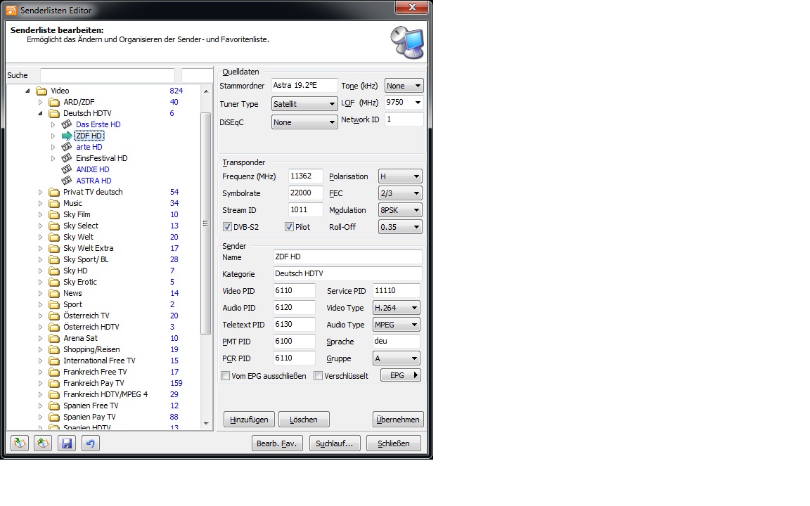 Derrick Posted June 26, 2010 Posted June 26, 2010 Mit TransEdit da habe ich unter der Frequenz 11362 auch ZDF Vision gefunden. Es gibt keinen sender, der so heisst. Empfängst du andere sender im unterband (<11700MHz)? ..und den support.zip please. Quote