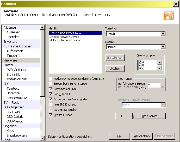 waltgallus Posted February 17, 2011 Author Posted February 17, 2011 in der systemsteuerung ist die tt-connect unter dem namen "Satelco easy watch hd tv" eingetragen..... Hm, unter welcher Rubrik? Hier unter "Audio-, Video- und Gamecontroller": "TechnoTrend TT-connect S2-3650 CI (BDA)" Gruss Walt Gallus Quote