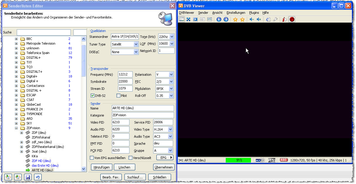 iznogud Posted August 30, 2010 Author Posted August 30, 2010 Moin Gofler, danke, aber in meiner bisherigen Not habe ich selbst die Transponderliste (mehrmals) aktualisiert. Mittlerweile habe ich ARD/ZDF/ARTE HD gefunden. Manuell allerdings! Die Transponderfrequenzen sind jedoch komplett andere als die jeweiligen Sender vorgeben. Ich habe mal einen Screenshot der DVBViewer-Einstellungen angehängt. Könnt ihr euch erklären, wie die merkwürdigen Frequenzen zustande kommen? Sollte meine SAT-Schüssel verstellt sein? cu, iznogud Quote