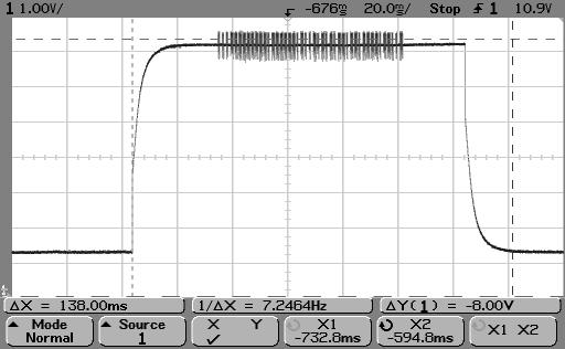 GrafKoks Posted September 6, 2010 Posted September 6, 2010 Habs nochmal getestet. Effektiv ist er nur ~140ms auf >18V, wie Du auf dem beigefügten Oszi-Screenshot sehen kannst. Quote