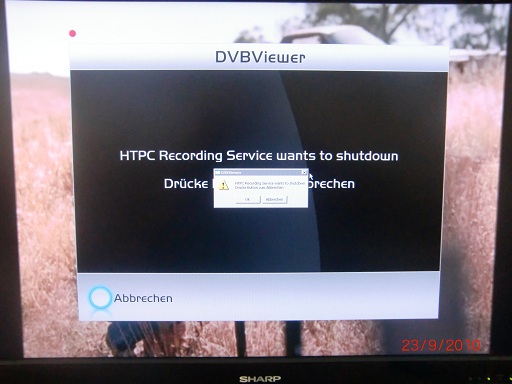 udo83 Posted September 23, 2010 Author Posted September 23, 2010 (edited) habs jetzt schon überschrieben aber in dem feld steht genau das gleiche wie auch in dem OSD Ding HTPC Recording Service wants to Shutdown Drücke Button zum Abbrechen. und ja sie kommt defenitiv vom service... wenn ich den wieder lösche komt sie ja nicht mehr Edited September 23, 2010 by udo83