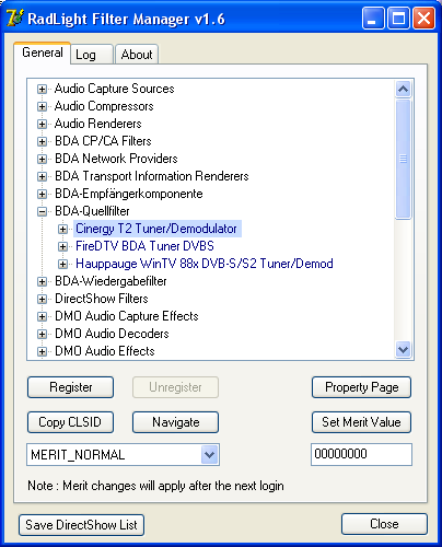 Griga Posted November 17, 2010 Posted November 17, 2010 (edited) Die Karte wird im Geräte Mänager korrekt angezeigt. angeblich hat er das schon getan. Im Gerätemanager werden Geräte unabhängig von BDA-Unterstützung immer angezeigt. In der SystemInfo.txt steht die Karte ja auch drin. Aber davon hat der DVBViewer nichts. Der braucht nicht das Gerät, sondern den Tuner-Filter, d.h. einen BDA-Treiber-Wrapper (KSProxy) als DirectShow-Filter. Er lässt das System alles aus der Kategorie KSCATEGORY_BDA_NETWORK_TUNER aufzählen. Wenn das nichts liefert oder der Filter sich nicht instantiieren lässt, scheitert die Erkennung. Was in der Kategorie vorhanden ist, kann man auch mit dem Radlight Filter Manager überprüfen: Edited November 17, 2010 by Griga Quote