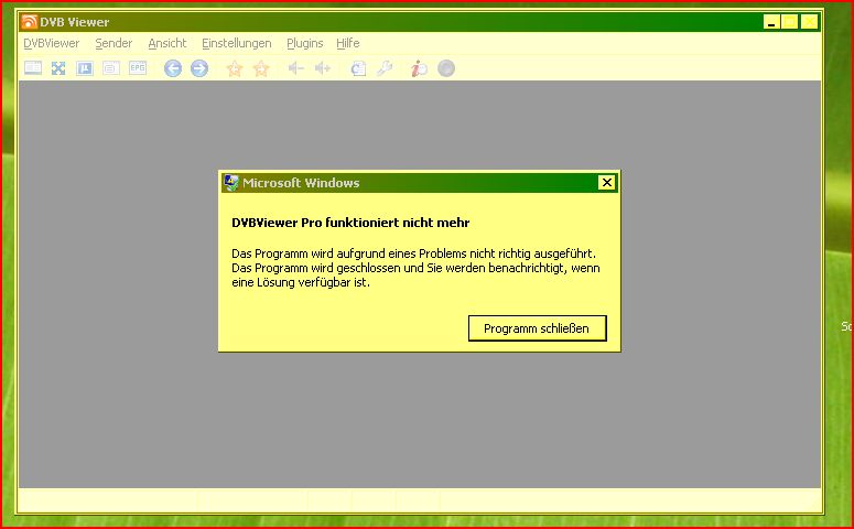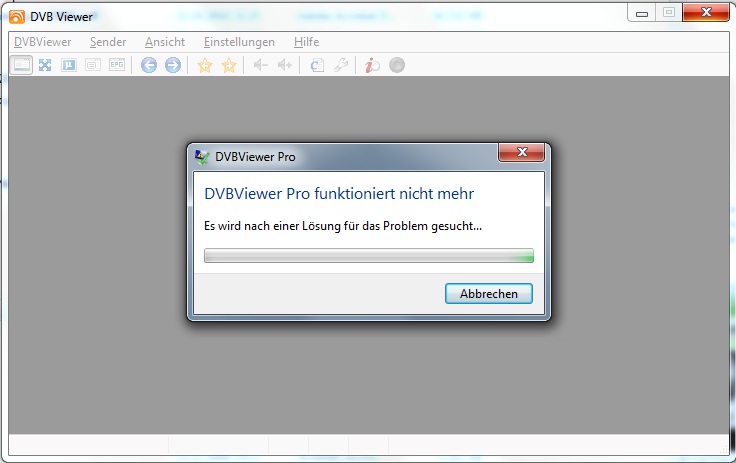 BMWfan Posted January 2, 2011 Posted January 2, 2011 (edited) Also ich habe das selbe Problem ich öffne den DVBViewer 4.5 dann öffne ich ein Sender (es spielt keine Rolle welcher Sender) und dann kommt die "Fehlermeldung DVBViewer Pro funktioniert nicht mehr". Im Anhang nochmal das Bild vom Problem und meine Grafikkarten Treiber Version Mein Betriebsystem: Windows 7 Professional x64 Grafikkarte: Nvidia Geforce 7600 GS Ich bitte um schnelle Hilfe. Der Debug Mode von DVBViewer funktioniert auch nicht. Ich vermute mal ganz stark das es Probleme mit dem neuen Grafikkarten Treiber gibt und es darum nicht geht. Deshalb müsste DVBViewer darauf angepasst werden. Gruß Dany Edited January 2, 2011 by BMWfan Quote