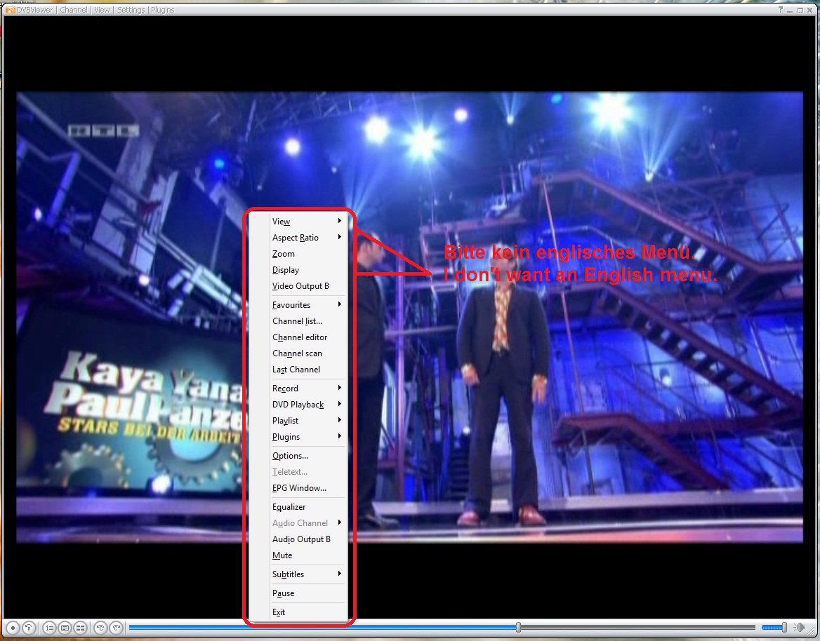 Tjod Posted April 10, 2011 Posted April 10, 2011 Bis zum nächsten DVBViewer Update bleibt nur als Lösung bei GUI Skins "No Skin" einstellen. http://de.DVBViewer.tv/wiki/Optionen_Aussehen Oder mit dem Englischen Kontextmenü leben. Quote