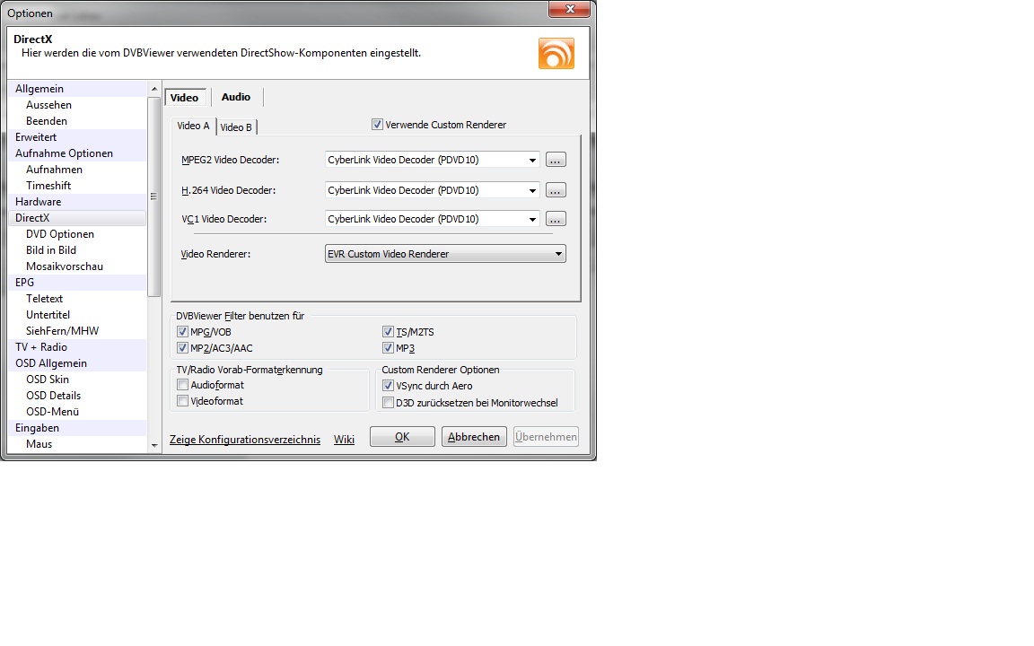 mh0001 Posted January 31, 2011 Posted January 31, 2011 Ich nehm mal an, du hast beim Neuaufsetzen gleich die aktuellsten Grafik- und DVB-Treiber installiert? Kannst ja mal den Custom Renderer ausschalten und normales EVR nehmen, oder sogar VMR. Quote