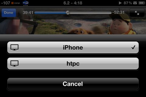 CiNcH Posted February 6, 2011 Posted February 6, 2011 Ich möchte hier mal ein Topic zu AirPlay aufmachen, weil ich gerade damit herumexperimentiert habe. Es ist primär dafür gedacht iOS Mobilgeräte in Apples Heimunterhaltungskonzept einzubinden. AirPlay spezifiert ein Client/Server-Protokoll. Der Server weist sich als solchen im Netzwerk aus. iOS Apps können diesen finden und mit wenigen Handgriffen das Streaming von Medien anstoßen. Diverse Server-Implementierungen gibt es bereits. Unter Windows zum Beispiel den AirMediaPlayer. Man muss ihn lediglich starten und schon kann man ihn vom iOS-Gerät aus finden. Hier zum Beispiel aus dem iPod-Player heraus: Jetzt kann man den AirPlay Server (in diesem Fall 'htpc') wählen und schon erscheint da das Video: Auf diese Weise könnte man auch Musik, Fotos, Web-Videos (YouTube) usw. vom iOS-Gerät streamen. Leider keine FairPlay geschützten Filme aus dem iTunes Store... So ein Server würde dem DVBViewer auch gut stehen. Evtl. werde ich mich näher damit beschäftigen. Quote