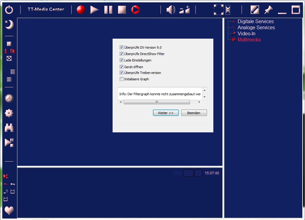 kfj Posted March 3, 2011 Posted March 3, 2011 Hallo DVBViewer-Gemeinschaft! Ich habe vor kurzem meinen HTPC fertig zusammengebaut, mit Windows Server 2008 R2 aufgesetzt, ein paar Mods eingespielt, z.B. BDA-Support (http://www.win2008workstation.com/forum/viewtopic.php?f=22&t=1023) Hardware wie in diesem Beitrag, nur mit der TechnoTrend S2-3200 als TV-Karte. Grafiktreiber ist Ati Catalyst 11.1 x64 + CCC2, läuft alles ohne Probleme. Neueste TechnoTrend-Treiber installiert, wird im Geräte-Manager und DVDViewer erkannt. DVD und BluRay funktioniert tadellos, alles mit PowerDVD 10. Trotzdem stimmt irgendetwas nicht, kein Bild und auch kein Sendersuchlauf ist möglich: Die TechnoTrend-Anwendung liefert mir folgende Fehlermeldung: Ich hab jetzt begonnen, mich mit dem Programm graphedit zu beschäftigen, komme aber überhaupt auf keinen grünen Zweig. Ich hoffe, jemand hat eine Idee, was ich noch ausprobieren könnte. Danke für die Antworten! KFJ support.zip Quote