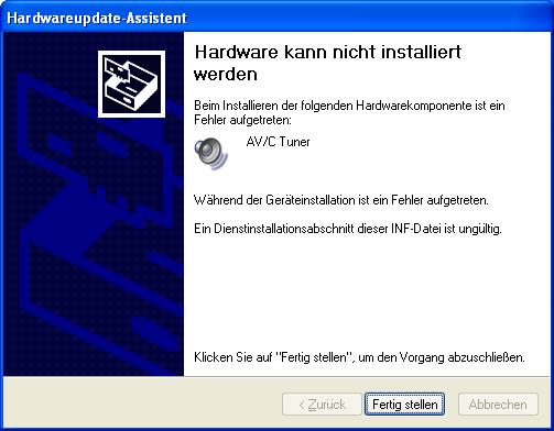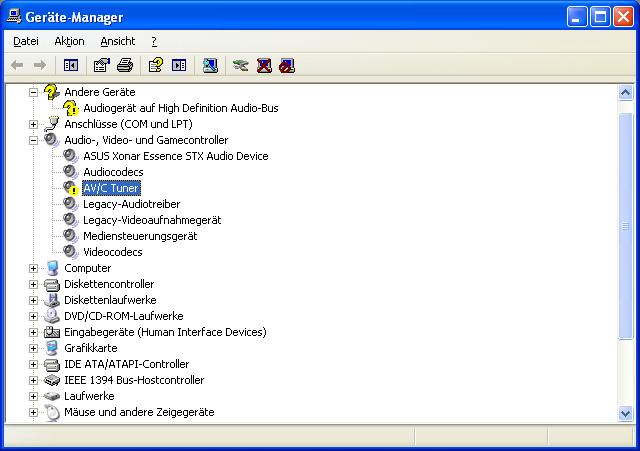 Evren Posted March 28, 2011 Posted March 28, 2011 (edited) Hallo, versuche nach geraumer Zeit den HTPC zum laufen zu bringen (Windows 7 deinstalliert da immer Ruckler da waren, und Windows XP installiert) Leider habe ich nach der Windows XP Installation Probleme bei der Treiberinstallation. Ich habe eine FireDTV über Firewire an meinem HTPC und erhalte bei der manuellen Installation Fehlermeldung (siehe Anhang). Danach steht die TV Karte als AV/C Gerät in der Liste (siehe Anhang) Folgendes habe ich probiert: -ältere Treiber 5.6 (gefunden über das Forum) -andere Firewire Treiber -raus/rein des FireWire Kabels Die Karte leuchtet Grün auf. Restliche Hardware: Mainboard MA78GM-S2H CPU BE-2400 Sound ASUS Xonar Essence STX GPU HD5450 Besten Dank im voraus Evren Edited March 28, 2011 by Evren Quote