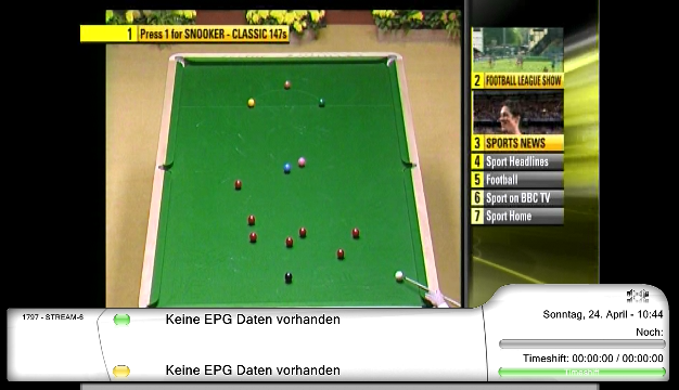 godik Posted April 24, 2011 Posted April 24, 2011 Auf BBC funktioniert MHEG-5 bei mir soweit ganz prima. Einzig wenn ich auf die Seite 3001 für den Sport Multiscreen wechsel ist es dann vorbei. Es ist nicht möglich zwischen den einzelnen Stream angeboten zu wechseln. Die einzelnen Kanäle sind in der Senderliste vorhanden. Ich habe mal zwei Screenshots angehangen, damit verständlich ist was ich meine. Wird diese Funktion noch implementiert, oder sollte das schon funktionieren ? cheers, Godik Quote