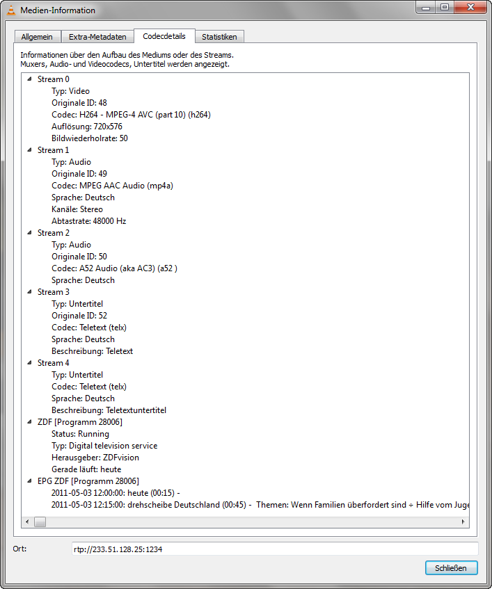 ts-soft Posted May 3, 2011 Author Posted May 3, 2011 Hab dann mal die Analyze als Screenshot angehangen. Zusätzlich noch die Codec-Info von VLC (selber Sender), wo man den EPG direkt sieht. Hoffentlich ist das erstmal hilfreich. Gruß Thomas Quote