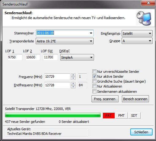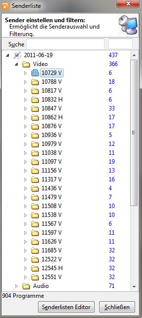 Tjod Posted June 19, 2011 Posted June 19, 2011 Stell mal die Senderliste auf Gruppiere nach > Sat + Frequenz http://de.DVBViewer.tv/wiki/Senderliste#Gruppiere_nach und guck ob die gefundenen bzw. fehlenden Sender was gemeinsam haben z.B. Polarisation horizontal / vertikal oder High-Band (11,7-12,75 GHz) / Low-Band (10,7-11,7 GHz) http://www.lyngsat.com/astra19.html Quote