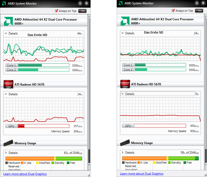 Herr Rossi Posted August 4, 2011 Author Posted August 4, 2011 Als erses mal ihr seid mir sehr willkommene Ratgeber und ich freue mich sehr über die rege Teilnahme. DXVA ist im Menü Ansicht=> Filter aktiviert Das HDMI-Kabel steckt an der HD 5670 und die Onboard HD 3200 taucht zumindest nicht mehr in Gerätemanager auf. Ich hoffe mal sie zickt nicht im Hintergrund noch dazwischen. BR Herr Rossi Quote