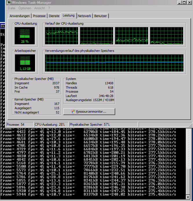 mague Posted August 11, 2011 Posted August 11, 2011 (edited) Hi, ich wuerde den 525er nicht unterschaetzen Es gibt Berichte das selbst der 330er das transcoding schafft. Es macht uberigends keinen Sinn HD herunterzurechnen wenn der gleiche Sender auch als SD vorliegt. Ein E350 hat vermutlich noch etwas mehr Rechenleistung bei aehnlichem Stromverbrauch. Wenn DVBLink dem System glaubhaft macht, dass es sich um einen BDA Treiber handelt, dann geht es evtl. Aber ich wuerde die Finger davon lassen. Zuviele Quellen fuer latency. Nachtrag: Hier ein Atom 330. Vista32 beim transcodieren. Allerdings nicht im RS, sondern auf der Konsole. Aber es kann evtl. was aussagen. Input: SD TS Output: MP4 cga (320x200) 24fps Edited August 11, 2011 by mague