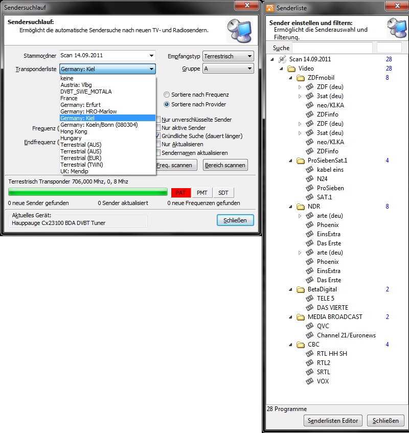 Robert72 Posted September 14, 2011 Author Posted September 14, 2011 Hmm, also es muß da schon Unterschiede geben, ich habe mal einen Suchlauf mit WinTV gemacht und dort wurden noch Bibel TV und Hamburg I gefunden (beide Standort Hamburg)...siehe Foto Quote