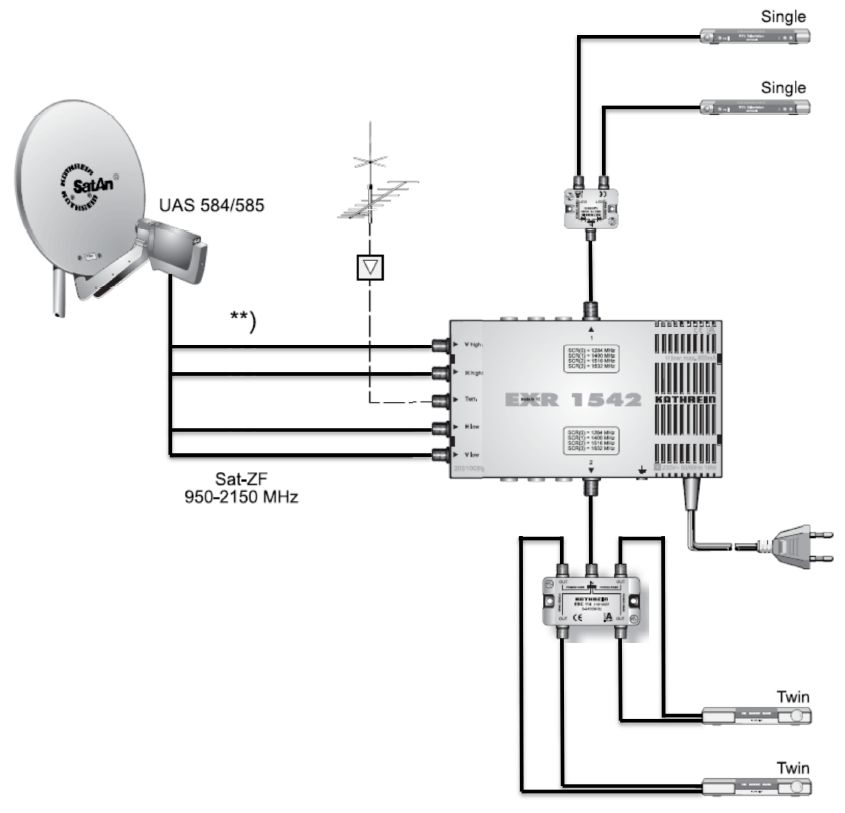 thomasfranzmichael Posted October 7, 2011 Posted October 7, 2011 Hallo Zusammen Ich habe zu Hause in meinem HTPC 2x die TT S2-3200 eingebaut. Bisher hatte ich ein SAT-Lösung mit einem Quad-LNB wobei ich direkt vom LNB in die TV-Karte gefahren bin. Nun möchte ich die Anlage erweitern und muss deshalb auf eine Einkabellösung umsteigen. Es kommt ein weiterer PC mit Twin-Tuner-Karte (Digital Devices Cine S2 V6) dazu. Nun meine Frage: Funktionieren die TT S2-3200 an einer Einkabel-SAT-Anlage? Das gedachte Verkabelungsschema findet ihr im Anhang. Vielen Dank für eure Hilfe. Thomas Quote