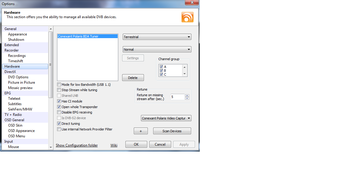 Rodrigo Pelle Posted October 7, 2011 Posted October 7, 2011 (edited) Hello folks... I've just bought the DVBViewer and I realized how wonderful is... I know my Tuner Card Pyxelview Hybrid USB is fully compatible with DVB but I'm not getting this to work... It shows in DVBViewer settings on 'Hardware' tab Conexant Polaris BDA Tuner Any clue? Thanks in advance! Edited October 7, 2011 by Rodrigo Pelle Quote