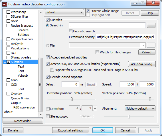 Komisch finde ich, dass bei der Videodekoder-Konfiguration obige Settings möglich sind, bei der VFW-Konfiguration jedoch die gleiche GUI kommt und "Accept embedded subtitles" und "Accept SSA, --------------- and ASS2 subtitles" ausgegraut sind?