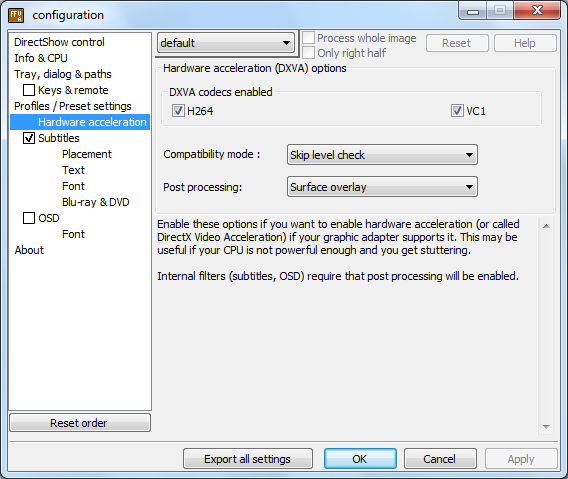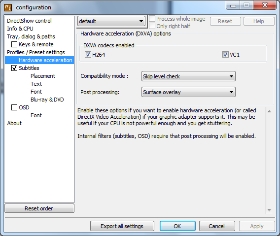 Also DXVA war nicht moeglich. Kann am 64bit System liegen oder was weiss ich. Bei mir laed er dann auch den Mircosoft codec. Sorry fuer die Konfusion.