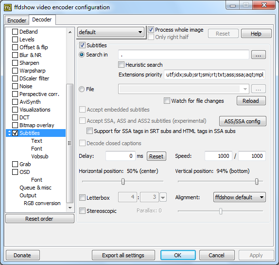Also erstmal interne Subs ohne DXVA? Ist mir recht, nur wie? Anbei nochmal meine aktuellen Settings. Anscheinend taugen die Deinstallationsroutinen von ffdshow tryouts und LAV Splitter was. Ansonsten hab ich extra eine Sicherung mit True Image gemacht, bevor ich mit den 'Codecs' angefangen habe.